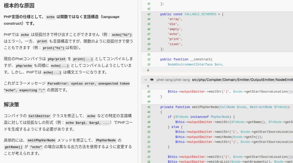 とは言え、結構大きいコードベースで、phel-langというメジャーではない言語のPHPのコンパイラという条件でも、修正箇所を一発で特定したことは驚きでした。Devin偉い。
